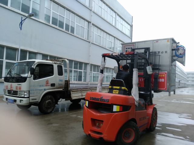 風雨無阻,發往山東棗莊的自動脫毛機裝車實拍圖片